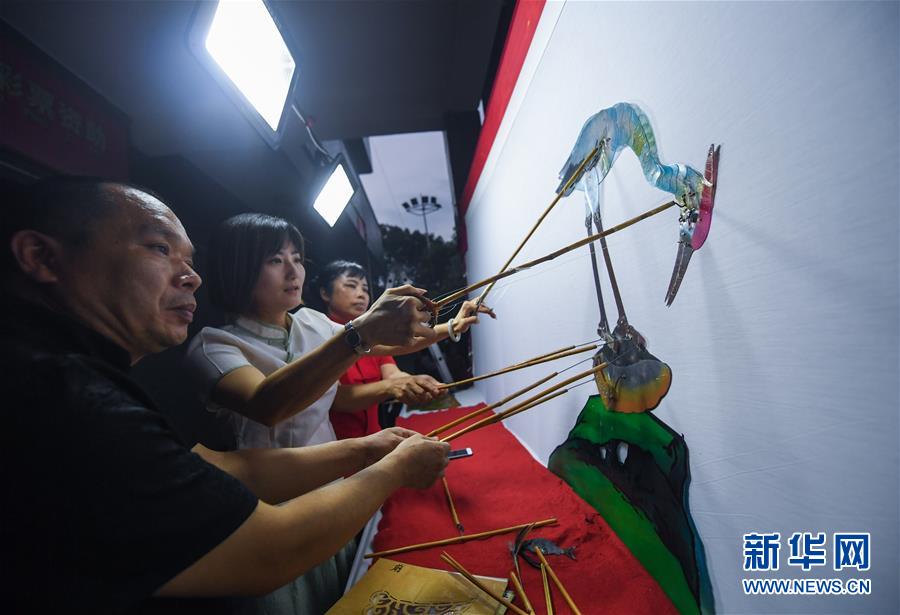 當(dāng)日,浙江省杭州市余杭區(qū)塘棲鎮(zhèn)河西埭村“衛(wèi)家班皮影戲”劇團(tuán)的藝人們來(lái)到余杭區(qū)喬司街道和睦橋村進(jìn)行演出,這是近期杭州市余杭區(qū)夏季鄉(xiāng)村“文化走親”的重要活動(dòng)之一。今年6月開(kāi)始,杭州市余杭區(qū)塘棲鎮(zhèn)組織多支文化表演團(tuán)體以“文化走親”的形式,先后送戲到余杭區(qū)近20個(gè)鄉(xiāng)村文化禮堂,豐富夏日鄉(xiāng)村百姓文化生活。在余杭塘棲一帶,歷史上曾活躍著一支以演出皮影戲出名的民間戲班子,號(hào)稱“衛(wèi)家班”。2016年,塘棲鎮(zhèn)河西埭村在文化禮堂的建設(shè)過(guò)程中,將當(dāng)?shù)貍鹘y(tǒng)的“衛(wèi)家班皮影戲”作為“一村一品”特色項(xiàng)目進(jìn)行了搶救性保護(hù)。2018年12月,“衛(wèi)家班皮影戲”被列入杭州市非物質(zhì)文化遺產(chǎn)代表性項(xiàng)目名錄。新華社記者徐昱攝