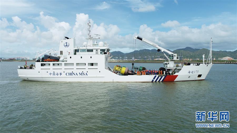 “海巡173輪”在試航(資料圖片,無人機(jī)照片)。“海巡173輪”7月22日正式列編交通運(yùn)輸部南海航海保障中心廣州航標(biāo)處。這艘排水量2228噸的大型航標(biāo)工作船是中國(guó)交通運(yùn)輸系統(tǒng)南海海區(qū)裝備最先進(jìn)的船,將用于粵港澳大灣區(qū)和南海海區(qū)水上浮標(biāo)的布設(shè)和維護(hù)。新華社發(fā)
