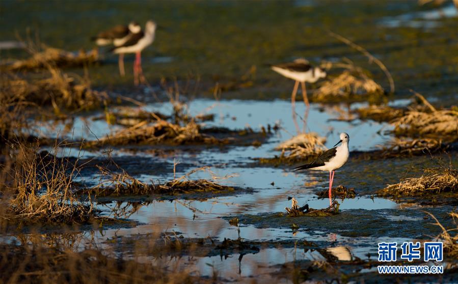7月28日,長(zhǎng)腳鷸在桃力廟—阿拉善灣海子覓食。鄂爾多斯?jié)竦匚挥趲?kù)布齊沙漠、毛烏素沙地接壤地帶,2002年被列入國(guó)際重要濕地名錄。從2006年開(kāi)始,由于濕地湖面萎縮、湖心島消失,在此筑巢繁殖的世界瀕危物種遺鷗幾近消失。近年來(lái),當(dāng)?shù)夭扇《喾N治理措施,濕地生態(tài)環(huán)境逐步好轉(zhuǎn)。2019年起,濕地內(nèi)的桃力廟—阿拉善灣海子迎來(lái)遺鷗大規(guī)?!盎貧w”。如今,40多種鳥(niǎo)類(lèi)在此棲息,鄂爾多斯?jié)竦刂匦鲁蔀轼B(niǎo)類(lèi)的樂(lè)園。新華社記者連振攝