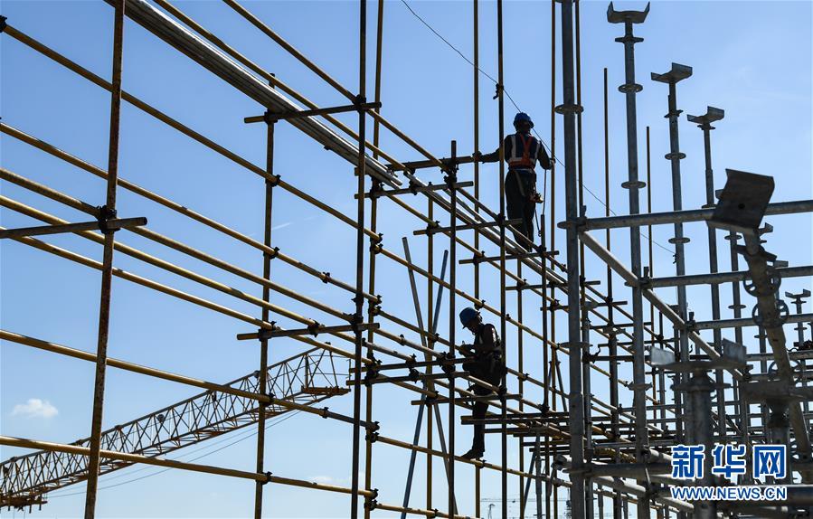 8月3日,工人在長江文創(chuàng)產(chǎn)業(yè)園項(xiàng)目工地施工。進(jìn)入8月,武漢迎來持續(xù)高溫天氣。在湖北廣電傳媒基地工程的工地上,中建三局總承包公司1500多名工人持續(xù)奮戰(zhàn),力保工程進(jìn)度。該工程是我國中部地區(qū)首個(gè)國家級(jí)廣播影視媒體基地,由湖北廣電傳媒大廈項(xiàng)目、長江文創(chuàng)產(chǎn)業(yè)園項(xiàng)目、廣電生活配套項(xiàng)目三大板塊組成,總建設(shè)規(guī)模130萬平方米。自今年3月25日獲批正式復(fù)工以來,承建方克服困難,把因疫情影響耽誤的工期趕了回來,預(yù)計(jì)將按原計(jì)劃完成建設(shè)任務(wù)。新華社記者程敏攝