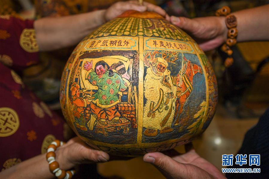 這是侯景偉創(chuàng)作的民俗主題葫蘆工藝品(8月5日攝)。今年55歲的吉林四平人侯景偉自幼與家人學習雕刻、烙畫藝術(shù)。經(jīng)過多年潛心研究,他將浮雕和烙畫工藝相結(jié)合,通過拋光、起稿、雕刻、烙燙、套色等十余道工藝,制作展現(xiàn)傳統(tǒng)文化、民俗故事的葫蘆工藝品。2020年,侯景偉被評為四平市非物質(zhì)文化遺產(chǎn)項目侯氏葫蘆雕刻烙畫代表性傳承人。他說:“希望有更多人加入到非遺傳承隊伍中,讓小葫蘆‘講’出更多民俗故事?!毙氯A社記者張楠攝