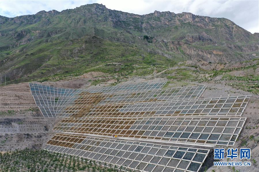 這是7月15日拍攝的舟曲縣南峪鄉(xiāng)江頂崖山體滑坡治理點(diǎn)(無(wú)人機(jī)照片)。新華社記者杜哲宇攝