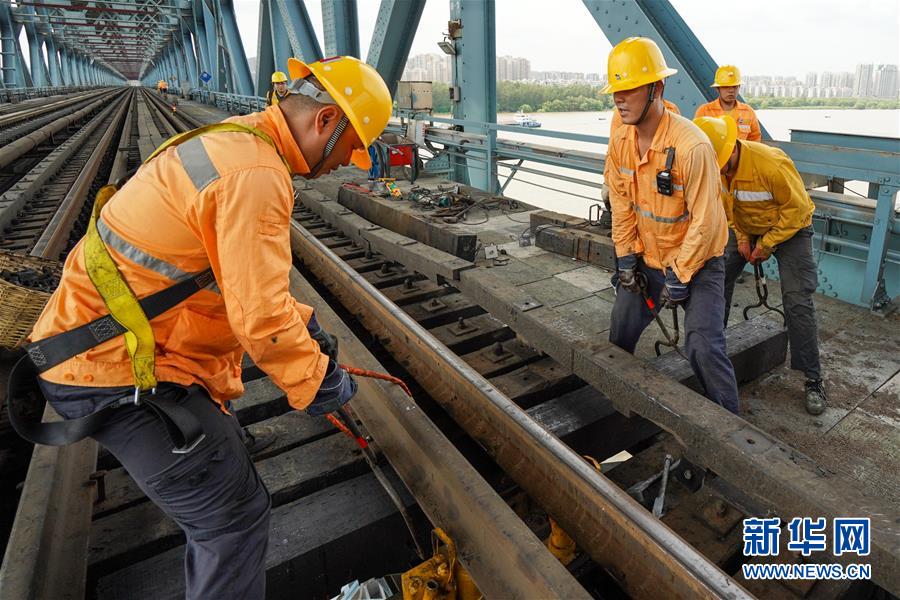 連日來,江蘇省南京市持續(xù)高溫天氣,在中國鐵路上海局集團(tuán)有限公司南京橋工段南京大橋車間,近80名橋隧工不畏高溫酷暑,堅(jiān)守崗位,確保暑運(yùn)列車的安全運(yùn)行。戴著安全帽,穿著防護(hù)服,橋隧工們趁著沒有列車運(yùn)行的“天窗時間”,每天用腳步“丈量”大橋,保障長江大橋鐵路橋運(yùn)輸暢通、安全。