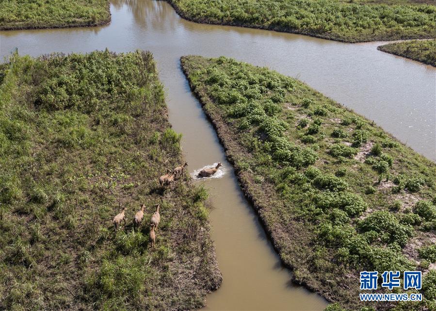 這是8月7日在東洞庭湖麋鹿和鳥(niǎo)類救治避難中心拍攝的麋鹿(無(wú)人機(jī)照片)。位于湖南省岳陽(yáng)市的東洞庭湖麋鹿和鳥(niǎo)類救治避難中心成立于2016年9月,占地400余畝,中心自建成后就承擔(dān)起東洞庭湖區(qū)域全部麋鹿的救援、醫(yī)治、康復(fù)和喂養(yǎng)任務(wù)。目前該中心共有14只麋鹿正在接受救助。新華社記者李鑫攝