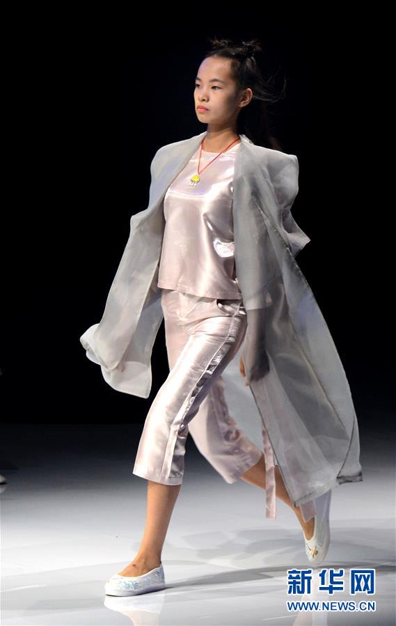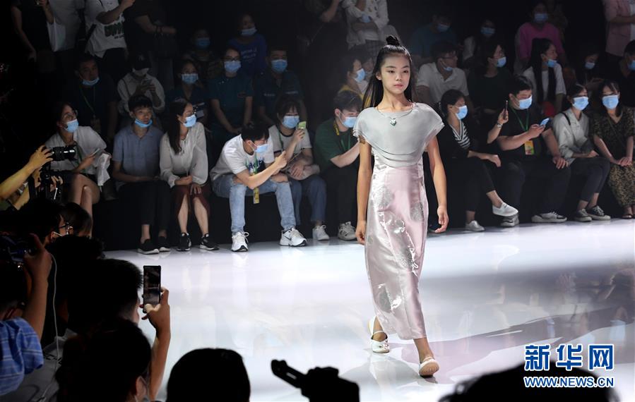 8月7日,小模特在T臺(tái)上展示童裝。當(dāng)日,2020中國(guó)(河南)國(guó)際大學(xué)生時(shí)裝周舉行童裝設(shè)計(jì)專場(chǎng)展示。8月5日至7日,2020中國(guó)(河南)國(guó)際大學(xué)生時(shí)裝周在河南省新密市豫發(fā)密蘭小鎮(zhèn)舉行。新華社發(fā)(海雨涵攝)