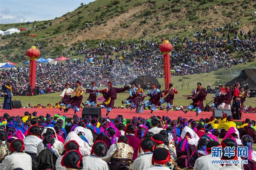 8月7日,在西藏首屆弦子舞展演現(xiàn)場,演出人員在表演弦子舞。當日,西藏首屆弦子舞展演在昌都市芒康縣舉行。眾多演員同臺獻藝,表演國家級非物質(zhì)文化遺產(chǎn)弦子舞,吸引西藏各地的群眾前來觀看。新華社記者孫非攝