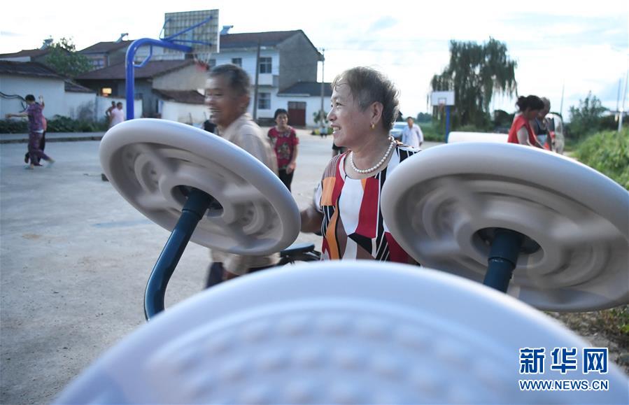 鄂州市長(zhǎng)港鎮(zhèn)峒山村村民在鍛煉身體(8月6日攝)。新華社記者 程敏 攝