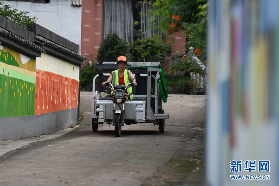 湖州市吳興區(qū)妙西鎮(zhèn)龍山村清運(yùn)人員在村里收集生活垃圾(8月5日攝)。近年來(lái),浙江省通過(guò)創(chuàng)新宣傳教育,多措并舉促進(jìn)垃圾分類投放、收運(yùn)及處置的良性循環(huán),引領(lǐng)垃圾分類成為城鄉(xiāng)居民的生活新風(fēng)尚。新華社記者黃宗治攝。