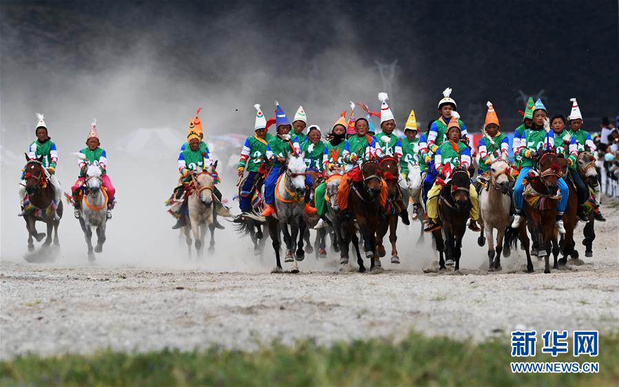 當日,“當吉仁”賽馬節(jié)比賽之一的五公里馬長跑比賽在西藏拉薩市當雄縣賽馬場舉行。一年一度的“當吉仁”賽馬節(jié)8月8日在平均海拔4300米的當雄縣開幕,來自當雄草原的牧民,騎著自家的馬匹參加比賽,策馬揚鞭,一決高下。