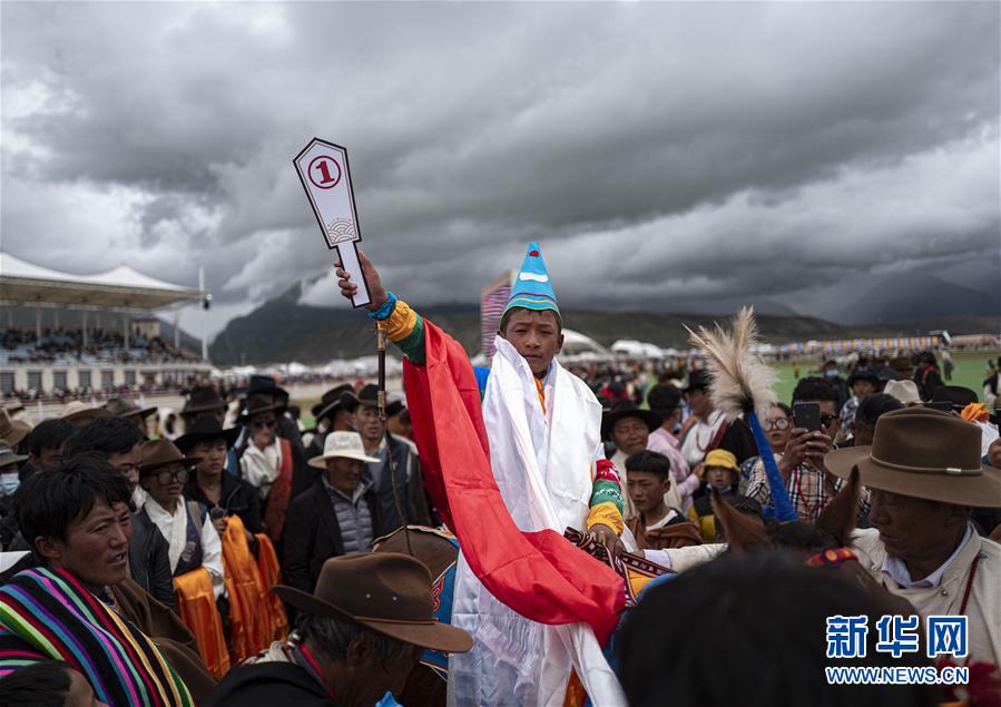 8月10日,羊八井鎮(zhèn)桑巴薩三組格桑占堆家的馬獲得“當(dāng)吉仁”賽馬五公里馬長(zhǎng)跑比賽第一名。新華社記者普布扎西攝。