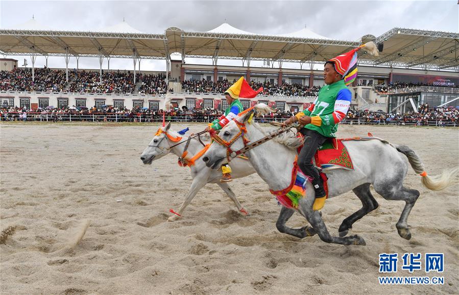 8月10日,騎手馳騁在當(dāng)雄縣賽馬場。新華社記者晉美多吉攝。