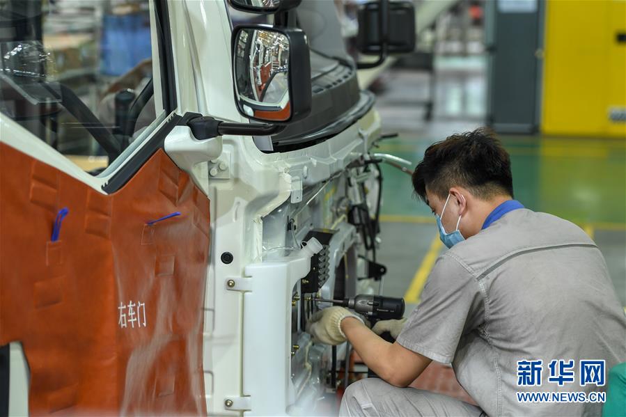 8月10日,在位于長(zhǎng)春市的一汽解放總裝車(chē)間,工人在裝配車(chē)輛。中國(guó)第一汽車(chē)集團(tuán)有限公司7月銷(xiāo)售整車(chē)32.2萬(wàn)輛,同比增長(zhǎng)23.2%,延續(xù)上半年的增長(zhǎng)態(tài)勢(shì)。新華社記者張楠攝。