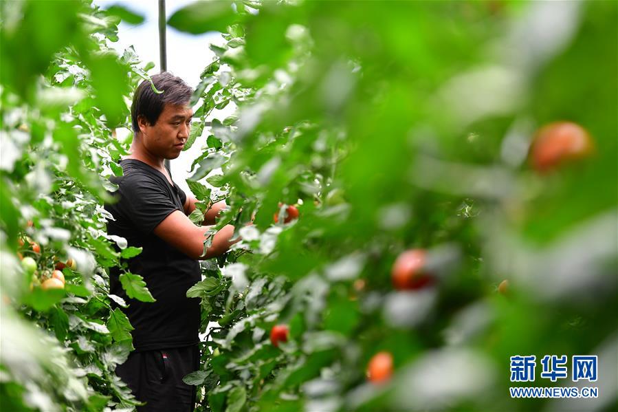 8月11日,在甘肅省臨夏回族自治州臨夏縣先鋒鄉(xiāng)前韓村,搬遷戶蔣元財(cái)在日光溫室內(nèi)采摘西紅柿。近年來(lái),甘肅省臨夏回族自治州臨夏縣把易地扶貧搬遷作為打贏脫貧攻堅(jiān)戰(zhàn)的重要任務(wù),科學(xué)推進(jìn)易地扶貧搬遷和脫貧攻堅(jiān)工作。為了讓搬遷群眾能夠安居樂(lè)業(yè),當(dāng)?shù)卣⒅胤龀趾罄m(xù)產(chǎn)業(yè)發(fā)展,引導(dǎo)搬遷群眾發(fā)展日光溫室、布鞋加工、觀光農(nóng)業(yè)、特色種養(yǎng)殖等產(chǎn)業(yè),幫助搬遷群眾實(shí)現(xiàn)就近就業(yè)、拓寬增收渠道,確保搬遷群眾“搬得出、穩(wěn)得住、有事做、能致富”。新華社記者陳斌攝