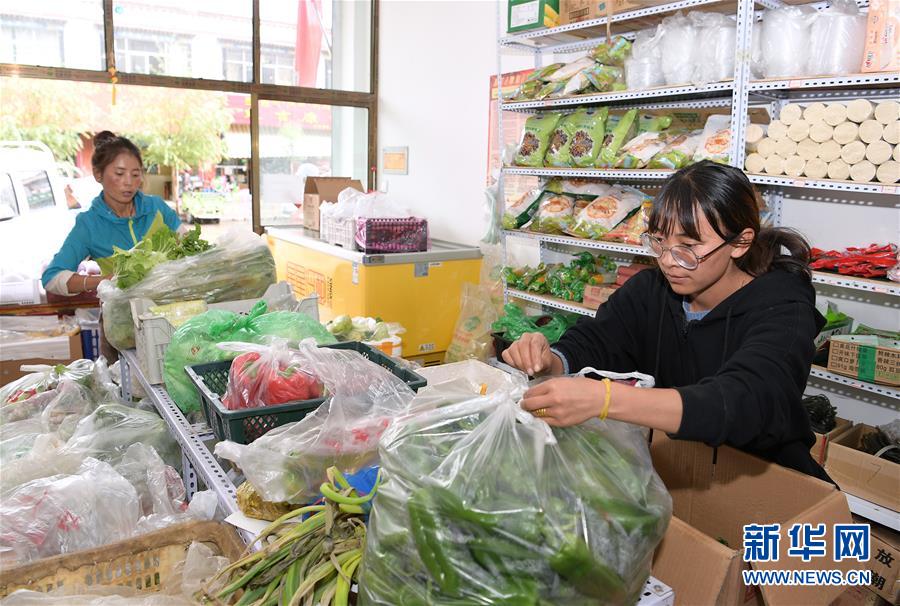 格桑旺姆推開(kāi)蔬菜店的卷閘門準(zhǔn)備營(yíng)業(yè)(8月3日攝)。新華社記者 李賀 攝