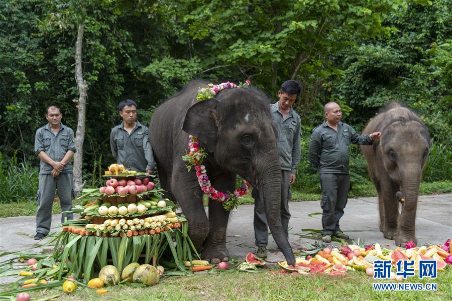當(dāng)日是世界大象日。云南省西雙版納傣族自治州野象谷景區(qū)的“象爸爸”為救助象“羊妞”慶祝五周歲生日。2015年,未滿月的“羊妞”闖入一戶農(nóng)戶家,后來被相關(guān)部門帶到云南省西雙版納傣族自治州的亞洲象種源繁育及救助中心。救助中心對它進(jìn)行了精心救治,還為它嚴(yán)格挑選了4名專職“象爸爸”。如今,“羊妞”的各項身體指標(biāo)恢復(fù)正常,體重也有明顯增加。