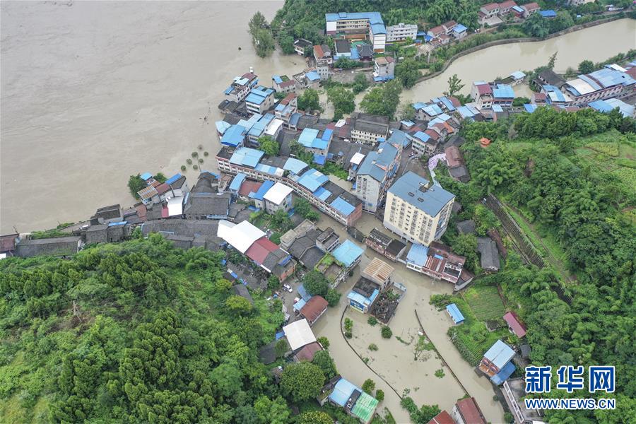 8月13日,在重慶市潼南區(qū)米心鎮(zhèn),涪江水位明顯上漲,洪水倒灌進場鎮(zhèn)(無人機照片)。受上游強降雨影響,嘉陵江近日出現(xiàn)明顯漲水過程,“嘉陵江2020年第1號洪水”已在嘉陵江支流涪江形成。重慶市正式啟動洪水防御Ⅱ級應(yīng)急響應(yīng)。據(jù)初步統(tǒng)計,截至13日16時30分,位于涪江畔的重慶市潼南區(qū),沿涪江7個鎮(zhèn)街不同程度受災(zāi),受災(zāi)人數(shù)8209人,轉(zhuǎn)移人口6658人,農(nóng)作物受災(zāi)面積5579畝。新華社記者黃偉攝