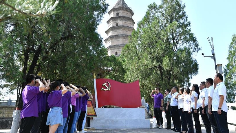 臨近“七一”,革命圣地延安的黨員干部紛紛來到紅色景區(qū),舉行主題黨課、現(xiàn)場教學、重溫入黨誓詞等活動。