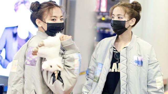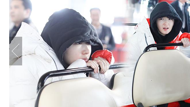 1月23日,北京,周冬雨現(xiàn)身機(jī)場(chǎng)。她用黑色連衣帽罩頭襯托巴掌臉,把下巴擱在行李車推桿上的雙手上呆萌可愛 。