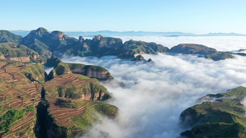 5月5日,雨后的河北省沙河市劉石崗鄉(xiāng)漸凹村云霧飄渺,村莊、山巒、梯田在云海中若隱若現(xiàn),構成一幅美麗畫卷。