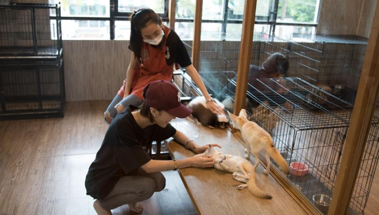 泰國首都曼谷有一間奇妙的動物咖啡館。在這里,顧客不僅能看到幾只可愛的貓咪,還可以在店員的陪伴指導(dǎo)下和貓頭鷹、闊耳狐等動物進行親密的接觸。