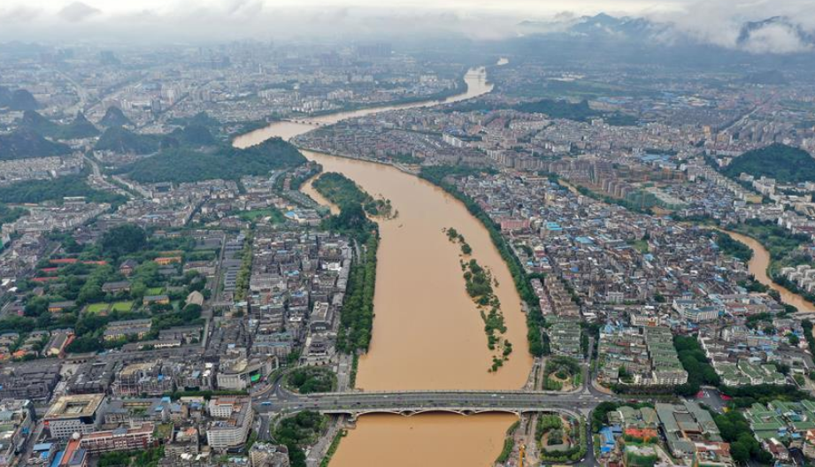 這是6月9日拍攝的廣西桂林市區(qū)(無人機(jī)照片)。