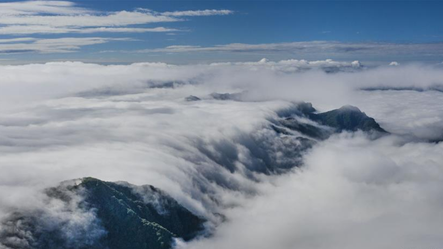 6月10日拍攝的漢中市南鄭區(qū)龍頭山景區(qū)的云海景觀(無人機(jī)照片)。