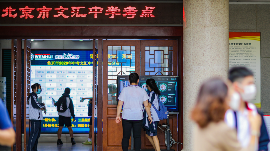 2020年7月17日,2020北京中考開始,在文匯中學(xué)考點學(xué)生們有序進(jìn)入考點。