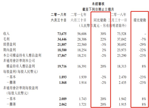 2018年8月15日,騰訊(00700)公布了第二季度及中期業(yè)績,上半年收入1472.03億元,同比增長39%,凈利潤411.57億元,同比增長26%。第二季度,收入736.75億元,同比增長30%,凈利潤178.67億元,同比下滑2%,環(huán)比來看,第二季度的各項(xiàng)業(yè)績指標(biāo)明顯弱于第一季度。
