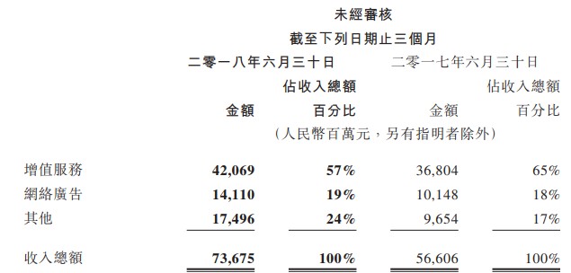 下面我們看該公司業(yè)務(wù)收入的變化,先看大類分錄,有增值業(yè)務(wù)、網(wǎng)絡(luò)廣告和其他業(yè)務(wù)。