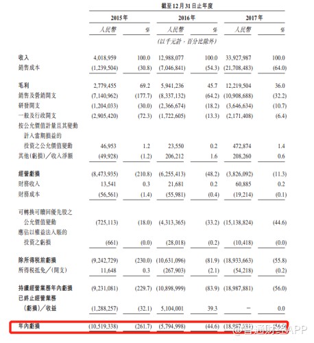 收入快速增長(zhǎng)的同時(shí),公司的虧損正在逐漸收窄。公司2015年虧損59億元,2016年虧損54億元,2017年虧損28億元,離扭虧為盈越來(lái)越近。