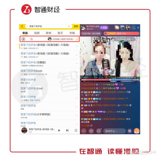 以此前熱播劇《延禧攻略》的片尾曲《雪落下的聲音》為例。這首歌的版權由QQ音樂獨家擁有,并在APP中擁有“獨家”的標識。但實際上,該歌曲在酷狗音樂、酷我音樂和全民K歌上同樣可以播放,可以說騰訊音樂版權在公司旗下4個產品是通用的。