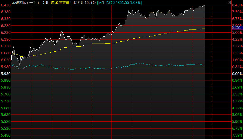 智通財經(jīng)APP獲悉,花旗首予金蝶國際(00268)“買入”評級,目標(biāo)價看高至10.1港元,午后漲幅擴(kuò)大,截至13時49分,漲7.25%,報價6.36港元,成交額2.18億。