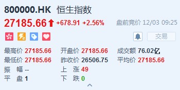 智通財(cái)經(jīng)APP獲悉,周日市場傳來好消息,G20峰會上中美元首在貿(mào)易摩擦議題上,中美雙方取得了積極進(jìn)展,對股市來說是一個極大的利好,短期內(nèi)市場投資氛圍會得到改善。恒生指數(shù)開盤漲2.56%,報27185.66點(diǎn)。國企指數(shù)漲3.05%,報10945.67點(diǎn)。紅籌指數(shù)漲2.29%,報4437.84點(diǎn)。大市盤前成交76.02億港元。