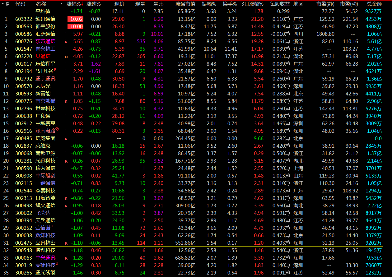 超乎尋常的頑強,早盤競價除東方通信(600776)與超訊通信(603322),板塊近乎全軍盡歿,但開盤后泰永長征(002927)、東方通信(600776)快速上拉,超訊通信(603322)封死一字板,給了市場短線資金信心,抄底盤開始進場,板塊開始迅速上攻。從今天早盤的表現(xiàn)看,5G板塊資金介入程度頗深,后續(xù)應重點關注。