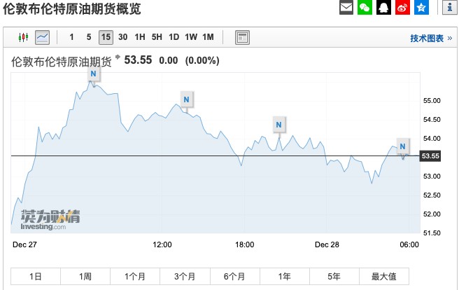 布倫特原油期貨無漲跌,報53.55美元/桶。