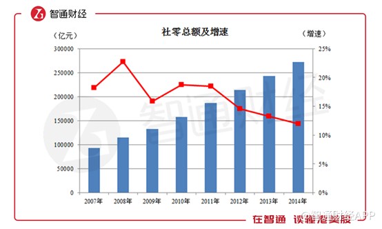 還從社零銷(xiāo)售說(shuō)起,近幾年增速徘徊在10%,預(yù)計(jì)未來(lái)還會(huì)進(jìn)一步下降。