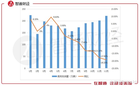 再具體一點(diǎn),根據(jù)智通財(cái)經(jīng)APP的統(tǒng)計(jì),2018年乘用車(chē)全年累計(jì)銷(xiāo)量2235萬(wàn)輛,同比下降5.8%,其中在12月份,銷(xiāo)量同比下滑達(dá)19.2%,連續(xù)8個(gè)月增長(zhǎng)持續(xù)下滑,且連續(xù)6個(gè)月出現(xiàn)負(fù)增長(zhǎng)。這說(shuō)明汽車(chē)的“消化”能力已經(jīng)到了一個(gè)瓶頸。