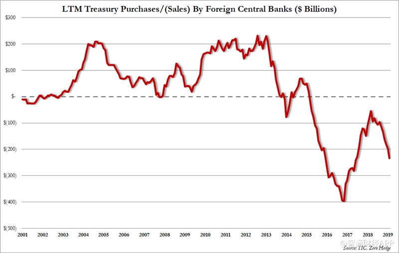 以比利時(shí)清算機(jī)構(gòu)為主導(dǎo),外國(guó)央行連續(xù)第五個(gè)月拋售美國(guó)國(guó)債(共計(jì)減1570億美元),以及過去11個(gè)月里有10個(gè)月減持(共計(jì)減2520億美元)。盡管這其中很大一部分被從私人賬戶購(gòu)買所抵消。