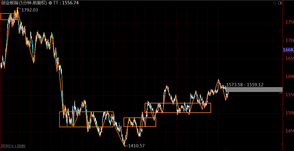 創(chuàng)業(yè)板這里仍然走的較為強(qiáng)勢(shì),需要關(guān)注1530點(diǎn)的支撐,只要不跌回下方的三十分鐘中樞,都可視作是在構(gòu)建第三類買點(diǎn)。結(jié)合滬指的情況來說,這里盤整背馳的概率更大,預(yù)期在下周初反彈后,創(chuàng)業(yè)板指數(shù)將會(huì)跌回三十分鐘中樞區(qū)間。