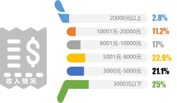 本次調(diào)研中,公司一般職員的比例最高,為27.7%,其次是學(xué)生,占比為18.3%。53.9%的受訪者其個(gè)人月收入超過5000元。