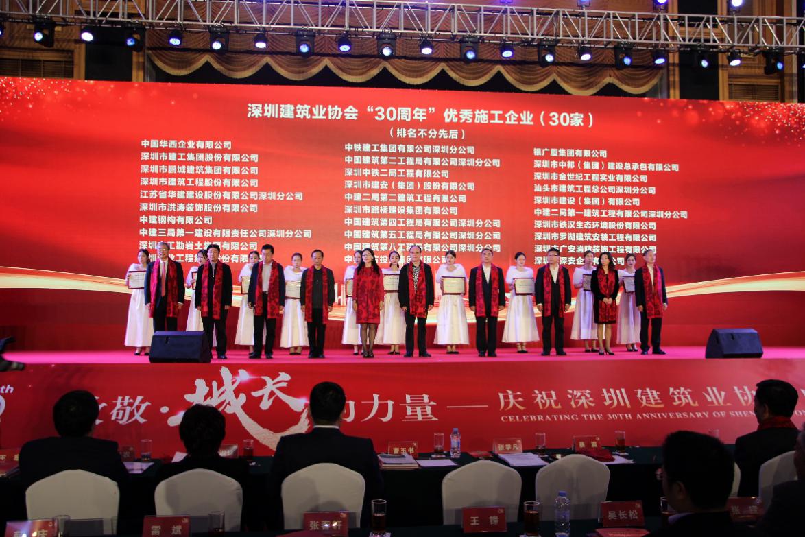 本次慶典上,深圳建筑業(yè)協(xié)會(huì)表彰了一批在促進(jìn)、推動(dòng)深圳建筑行業(yè)發(fā)展中作出重大貢獻(xiàn)的優(yōu)秀企業(yè)和個(gè)人,鼓勵(lì)他們不斷探索創(chuàng)新,共同創(chuàng)造深圳建筑業(yè)的輝煌。深圳市建被授予“30周年優(yōu)秀施工企業(yè)”;翠林投資集團(tuán)董事長(zhǎng)王忠明榮獲深圳建筑業(yè)協(xié)會(huì)“30周年優(yōu)秀企業(yè)家”稱號(hào);深圳市建員工盧燦光、郝崇民榮獲“30周年優(yōu)秀項(xiàng)目經(jīng)理”稱號(hào);深圳市建老員工李炳坤榮膺“30周年優(yōu)秀工匠”稱號(hào)。