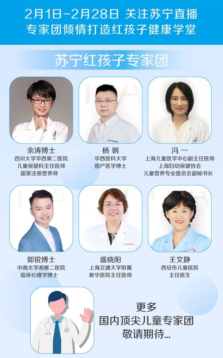 蘇寧紅孩子聯(lián)合惠氏、雀巢、佳貝艾特、美贊臣、伊利,邀請(qǐng)到北京協(xié)和醫(yī)院、、上海交通大學(xué)附屬新華醫(yī)院、廣州市婦女兒童醫(yī)療中心、中南大學(xué)湘雅二醫(yī)院、華西醫(yī)科大學(xué)、華西第二醫(yī)院、首都醫(yī)科大學(xué)附屬北京婦產(chǎn)醫(yī)院、上海交通大學(xué)醫(yī)學(xué)院附屬國(guó)際和平婦幼保健院等醫(yī)院的主任醫(yī)師以及醫(yī)科大學(xué)的醫(yī)學(xué)博士組成專家團(tuán),通過蘇寧直播為孕產(chǎn)婦直播講解孕媽乳媽、兒童防護(hù)措施,以及如何避免寶寶交叉感染的防護(hù)措施和建議。