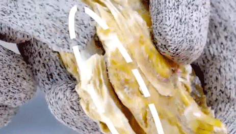 開生蠔特簡單,趁其不備,找到生蠔邊緣,插它一刀,往邊上一擰,它就不“自閉”了!