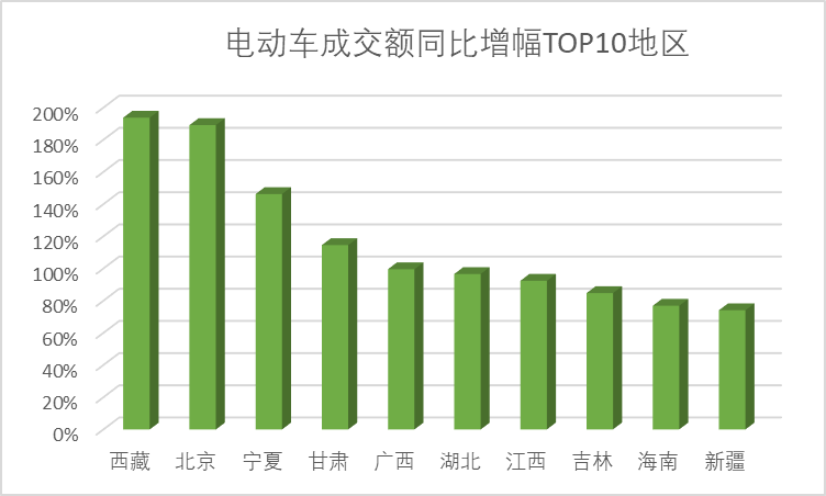 (電動(dòng)車成交額同比增幅TOP10地區(qū))