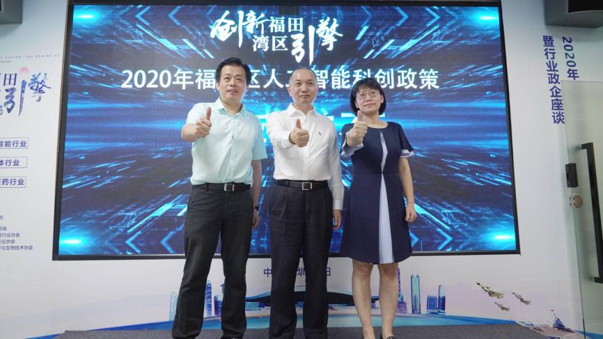 福田區(qū)人民政府歐陽繪宇副區(qū)長、福田區(qū)科技創(chuàng)新局張忠暉局長、人工智能行業(yè)協會郎麗艷執(zhí)行會長聯合啟動“創(chuàng)新福田,灣區(qū)引擎”2020年福田區(qū)人工智能科創(chuàng)政策正式發(fā)布儀式。