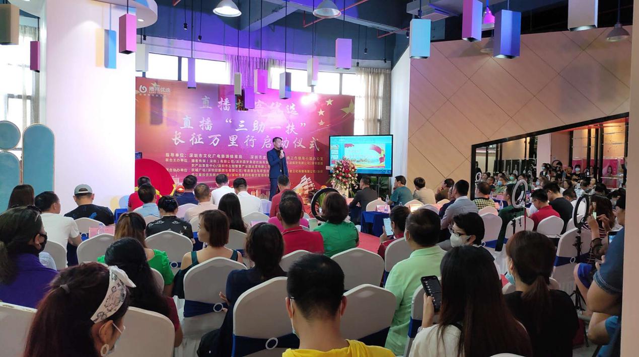 見圳客戶端 ·深圳新聞網(wǎng)2020年6月16日訊 昨天下午,播客優(yōu)選直播“三助一扶”長征萬里行啟動儀式在深圳市龍崗區(qū)播客傳媒(深圳)有限公司舉行。來自深圳市文體旅游局、陜西省寶雞市駐深辦、貴州省遵義市和銅仁市駐深辦、以及廣西桂林的代表蒞臨現(xiàn)場。