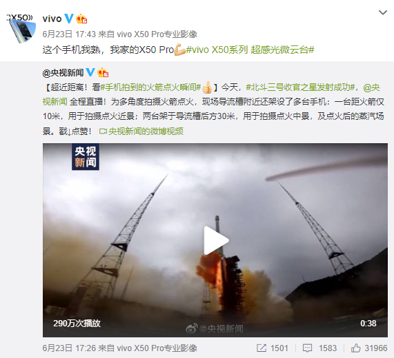 助力中國(guó)航天!vivo X50 Pro記錄火箭點(diǎn)火升空瞬間