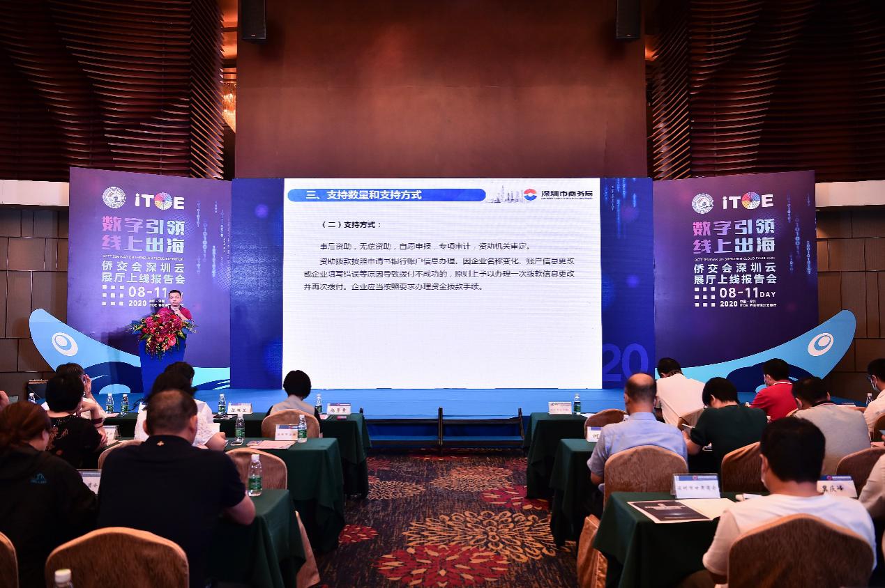 見圳客戶端·深圳新聞網(wǎng)2020年8月12日訊(記者 張俊達)昨天,“數(shù)字引領?線上出?!眱S交會深圳云展廳上線報告會在深圳綠景酒店三樓會議廳成功召開。以"數(shù)字引領?線上出海,提升企業(yè)國際競爭力"為主題,本次報告會重點展示“ITOE僑交會深圳云展廳”創(chuàng)新會展模式、解讀疫情之下外貿中小企業(yè)如何通過數(shù)字化轉型,并帶來2020年度最新中央外經(jīng)貿發(fā)展專項資金政策宣講。深圳多個商會、行業(yè)協(xié)會,以及僑企、港企、深圳外向型企業(yè)、展覽公司近200名代表參加報告會。
