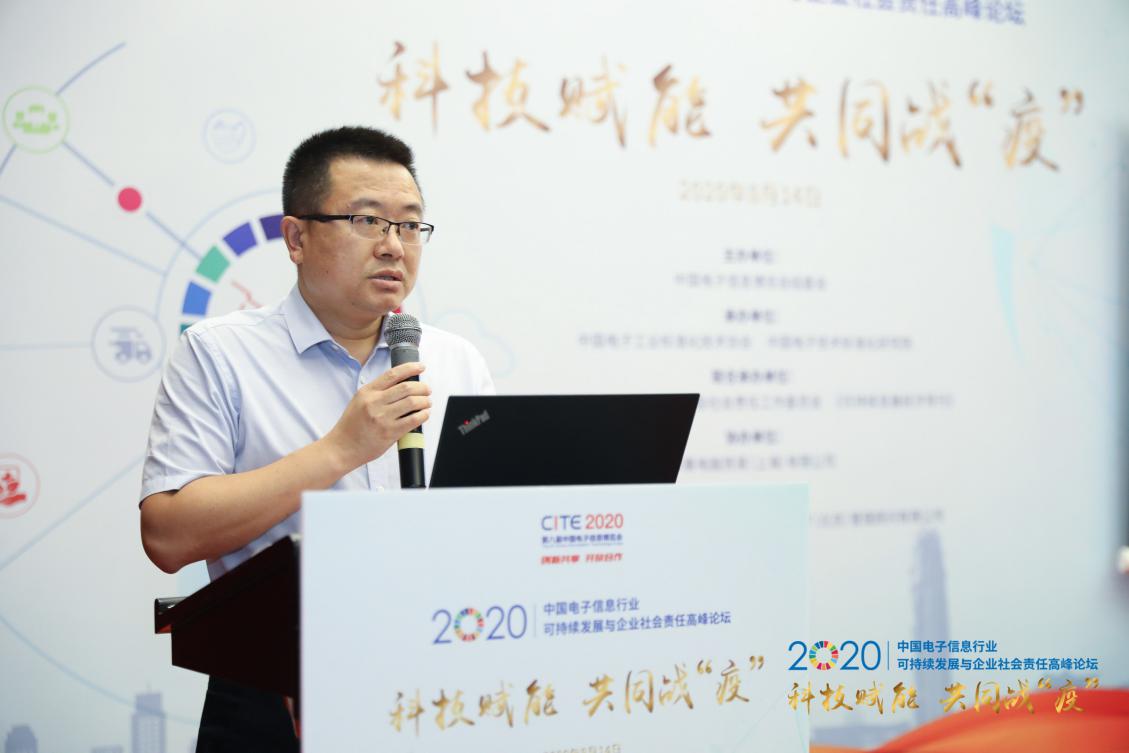 工業(yè)和信息化部產(chǎn)業(yè)政策與法規(guī)司綜合處處長徐華在致辭中表示:面對新型冠狀病毒肺炎疫情的洶涌來襲,電子信息行業(yè)企業(yè)積極承擔(dān)社會責(zé)任,構(gòu)筑起了戰(zhàn)“疫”堅固防線,充分發(fā)揮自身專業(yè)優(yōu)勢,運用信息技術(shù)能力,為抗擊疫情、復(fù)工復(fù)產(chǎn)做出了積極貢獻(xiàn)。產(chǎn)業(yè)政策與法規(guī)司作為工業(yè)和信息化部負(fù)責(zé)推動企業(yè)社會責(zé)任建設(shè)的主管司局,為深入貫徹落實黨中央國務(wù)院關(guān)于企業(yè)社會責(zé)任工作的要求,進(jìn)一步加強(qiáng)新時代工業(yè)通訊業(yè)企業(yè)社會責(zé)任的建設(shè),2020年,我們積極推進(jìn)《關(guān)于推動工業(yè)通信業(yè)企業(yè)社會責(zé)任指導(dǎo)意見》的研究與出臺,探索建立企業(yè)社會責(zé)任意識和能力提升機(jī)制,推動企業(yè)社會責(zé)任培訓(xùn)和宣傳交流工作。同時,通過搭建企業(yè)社會責(zé)任公共服務(wù)平臺,為宣傳企業(yè)社會責(zé)任政策和為企業(yè)開展社會責(zé)任信息披露及溝通交流提供服務(wù)。