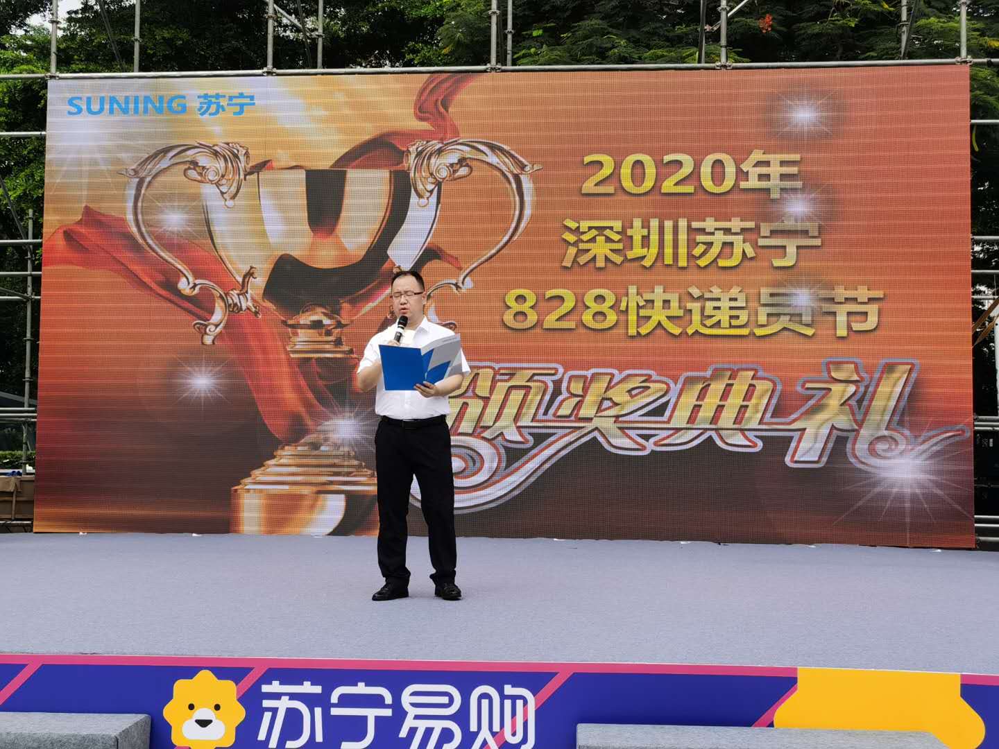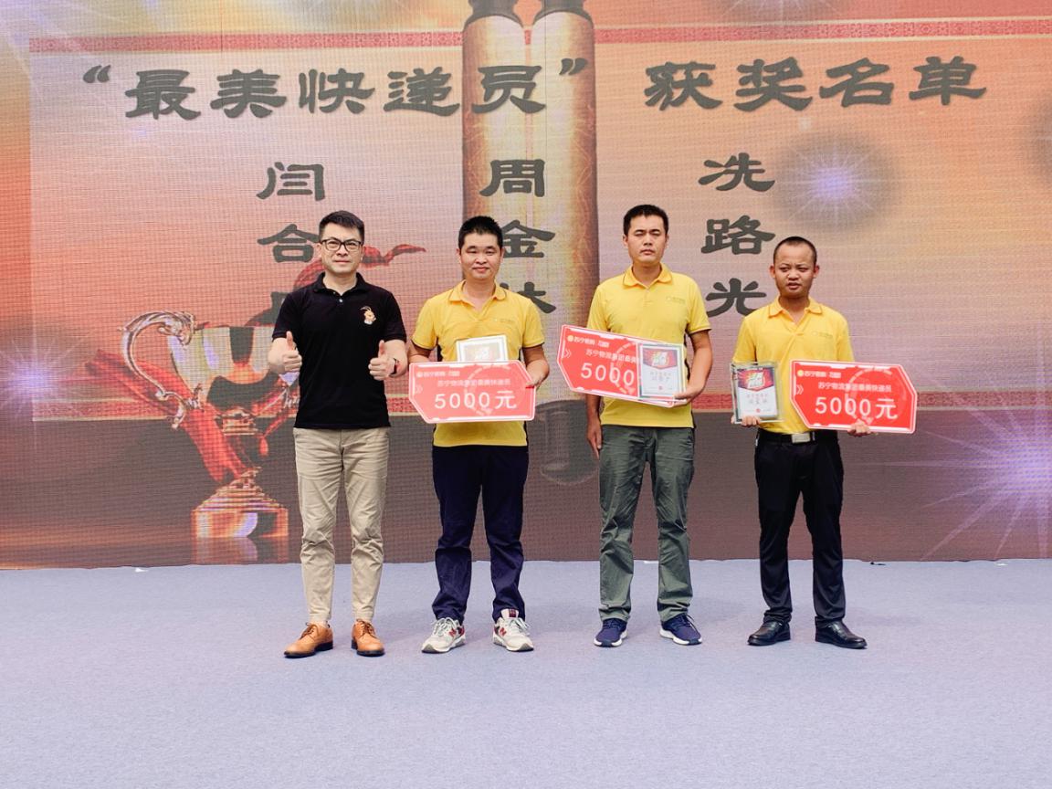粵港蘇寧快遞員頒獎慶典于28日上午10:30舉行,蘇寧易購深圳大區(qū)家電公司總經(jīng)理彭俊、深圳大區(qū)物流公司總經(jīng)理楊保及相關(guān)負責人等出席了此次活動。慶典活動上,彭俊表示,“本屆快遞員節(jié)主題為“進無所懼”,喻意蘇寧快遞在2020年不懼風浪、一往無前。今818,集團全新升級了“專注好服務”的品牌主張,變革、創(chuàng)新、引領(lǐng),服務更是物流集團的核心理念,快遞員節(jié)既為了致敬拼搏在一線全體遞員們,也是表達蘇寧快人堅定迎接挑戰(zhàn)、開啟新征程的勇氣?!?/p>